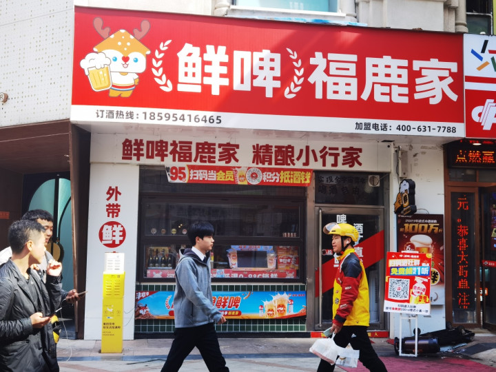 记者注意到,鲜啤福鹿家的营业时间多为11点至24点,个别门店延迟至次日凌晨1点。店员介绍,门店高峰时段集中在晚6点至10点,“年轻人下班路过买一杯,或者聚餐前带几杯,是最常见的场景”。记者注意到,门店未设置座位,消费者只能选择外带,打包杯采用密封性较强的塑料材质,杯身印有“请勿酒后驾车”的提示语。